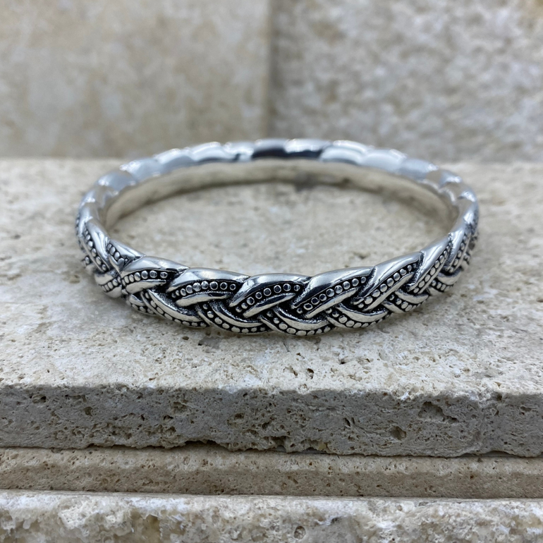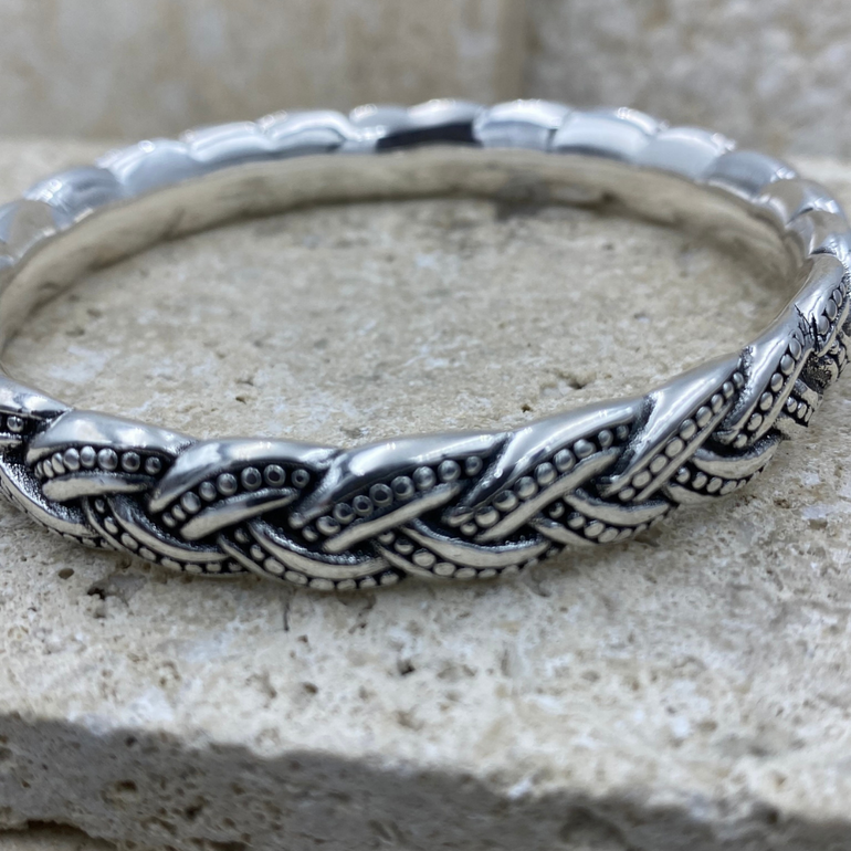 925 Sterling Silver Bangle with Plaited pattern. 10mm width.