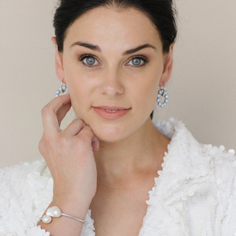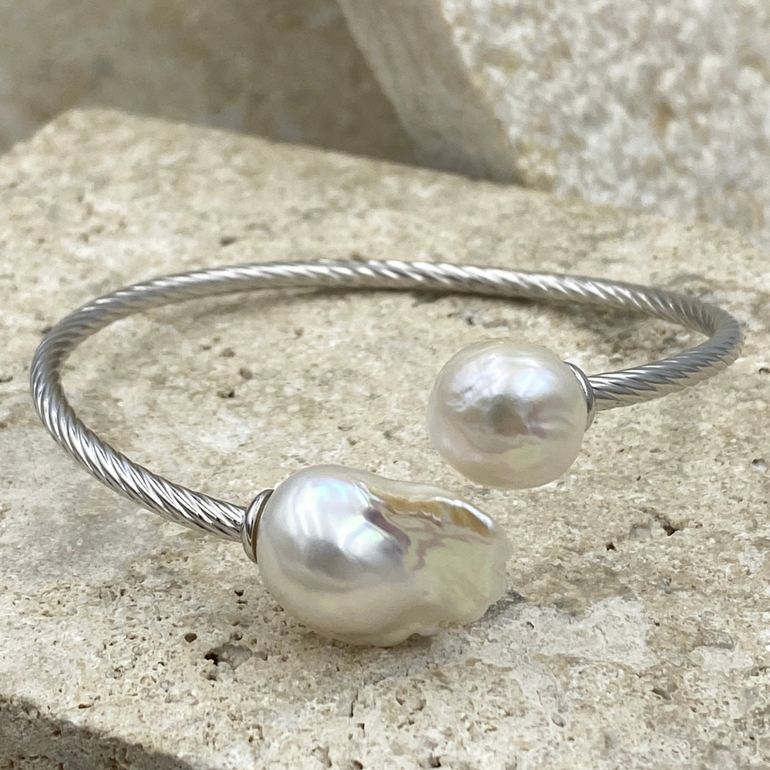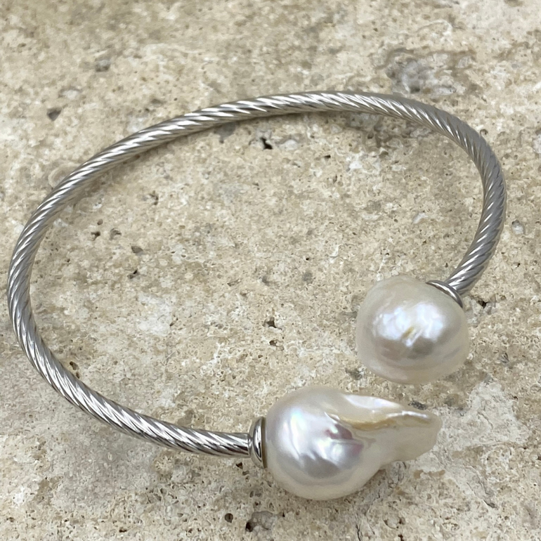 925 Sterling Silver & Natural Baroque Freshwater Pearl Bangle