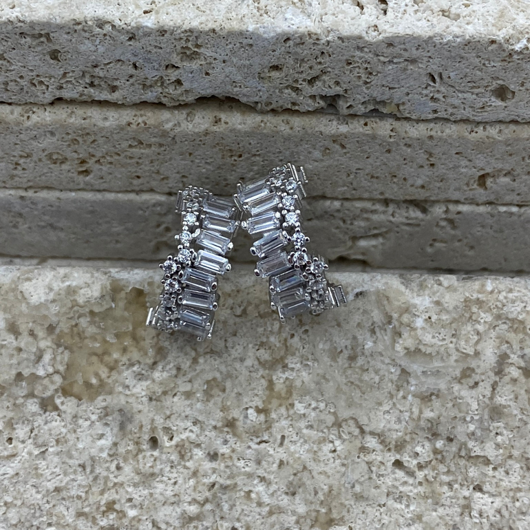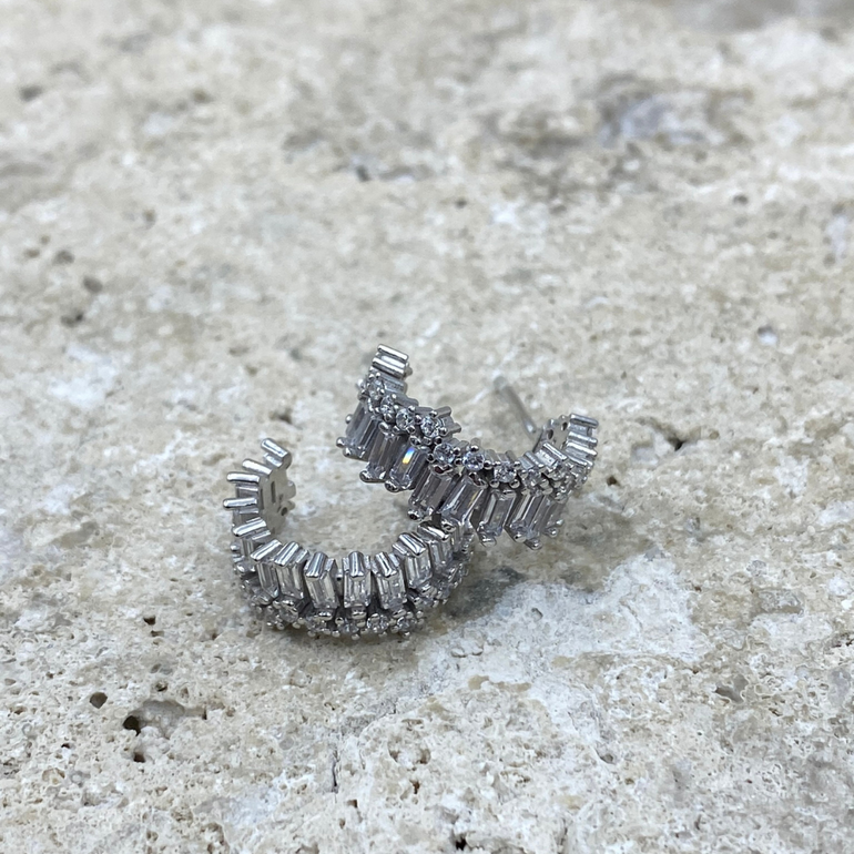 Baguette & Round CZ C-Hoops