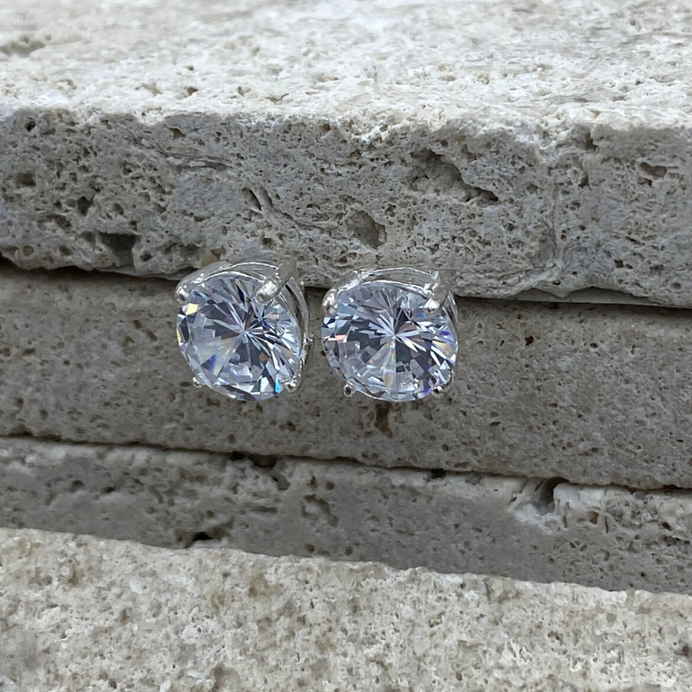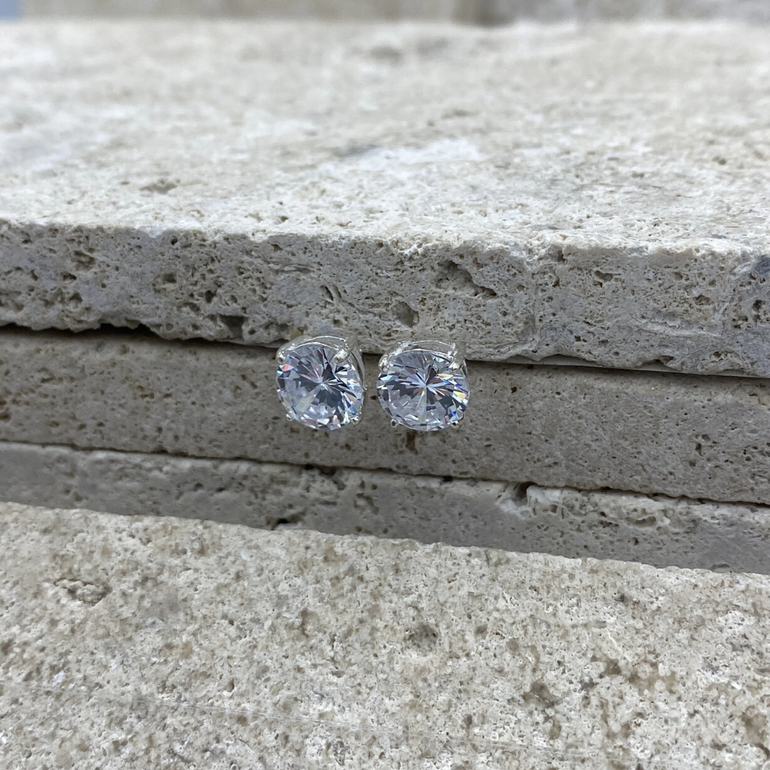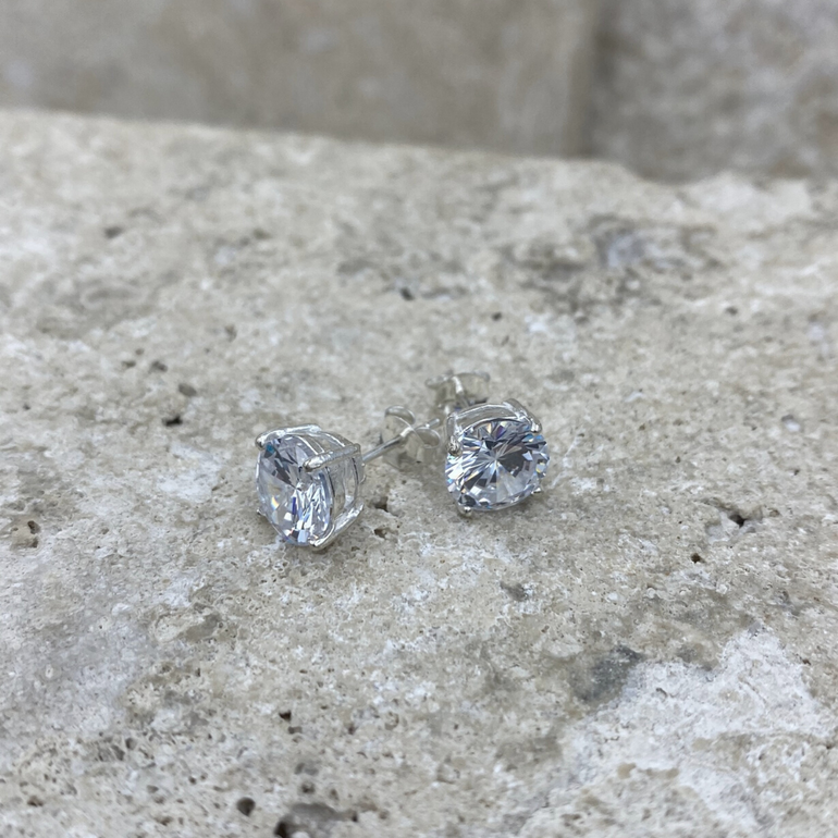 925 Sterling Silver & Cubic Zirconia Stud Earrings. The stone is 8mm in diameter.