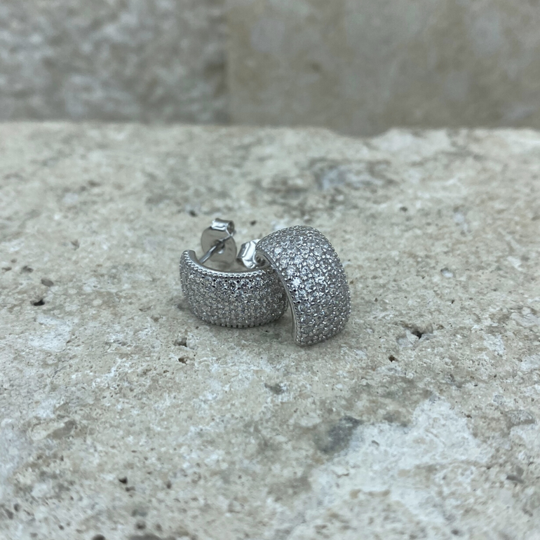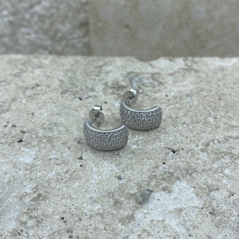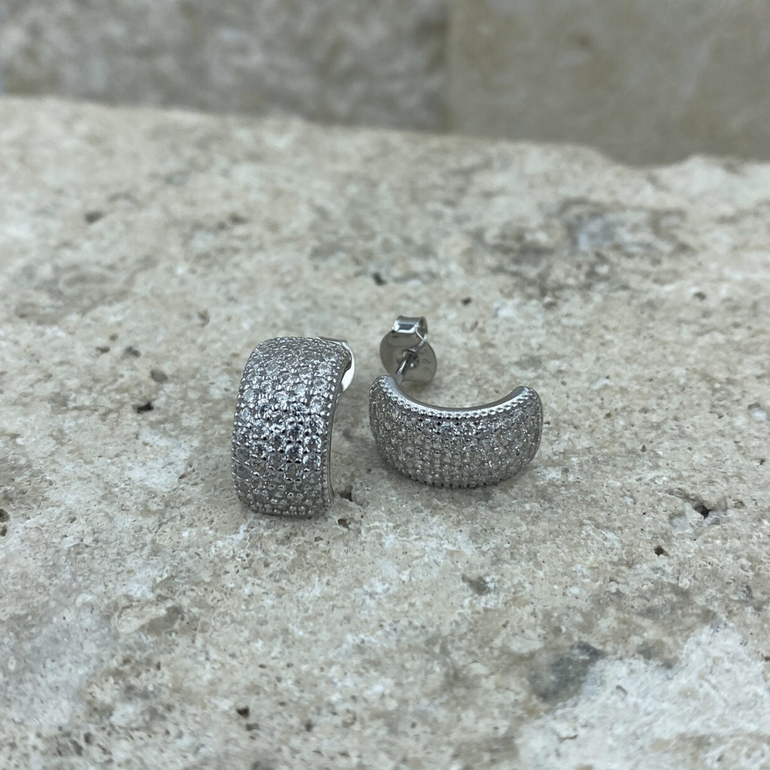 925 Sterling Silver & Cubic Zirconia C-Hoop Earrings. 13mm hoop & 8mm wide.