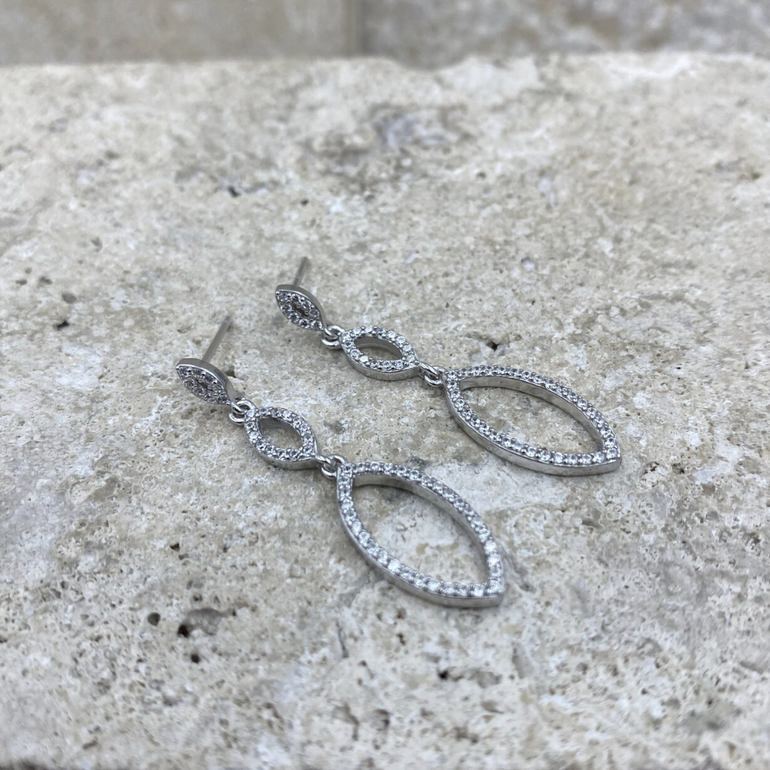 CZ & Silver Marquise Shape Earrings