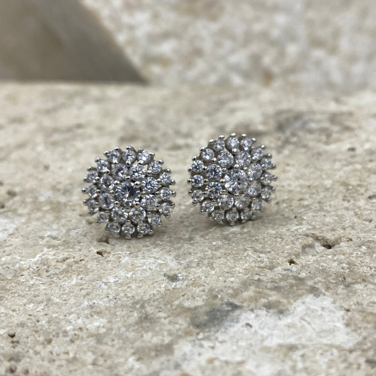 925 Sterling Silver Studs with Cubic Zirconia stones. 12mm diameter.