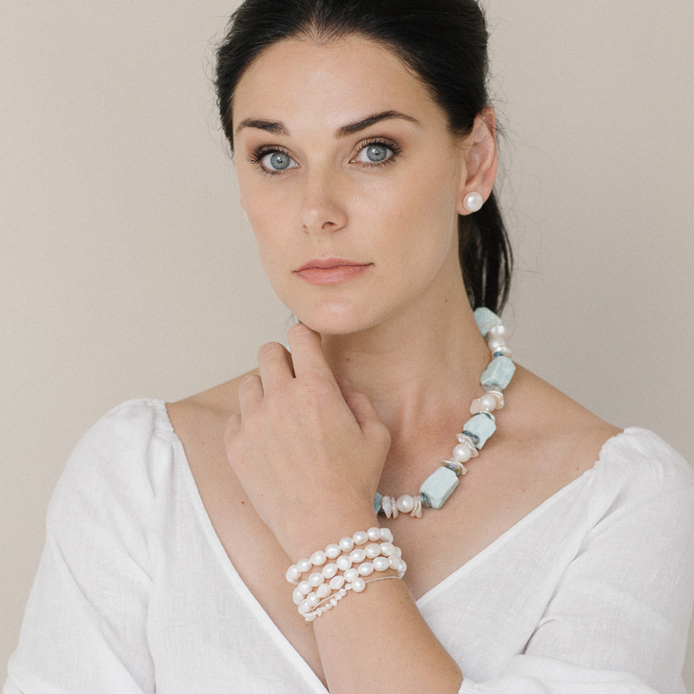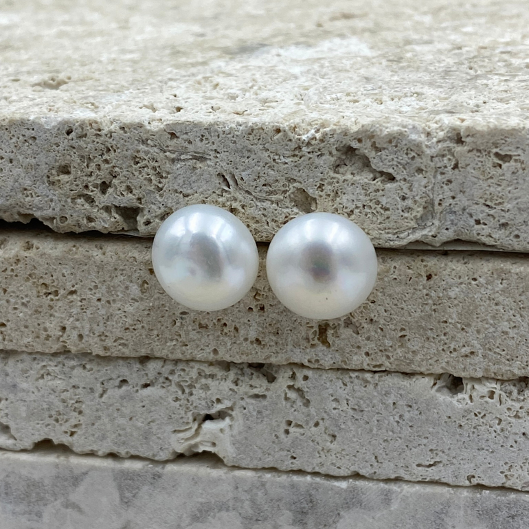 Natural Freshwater Pearl Earrings on 925 Sterling Silver Stud.