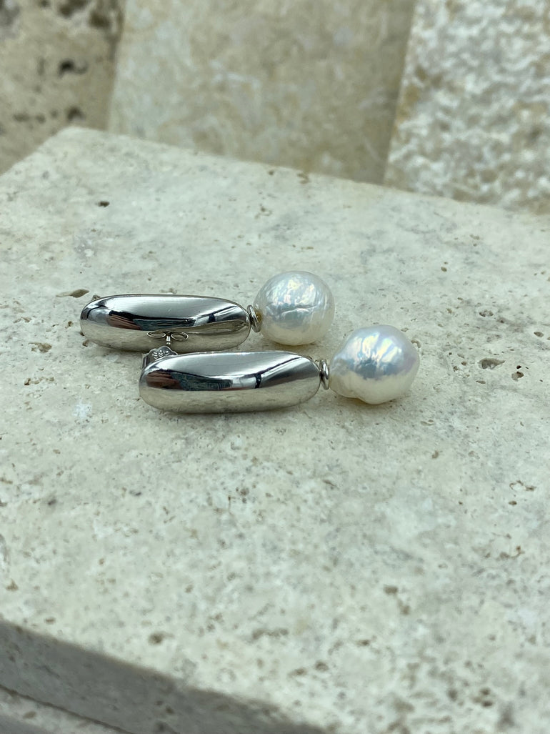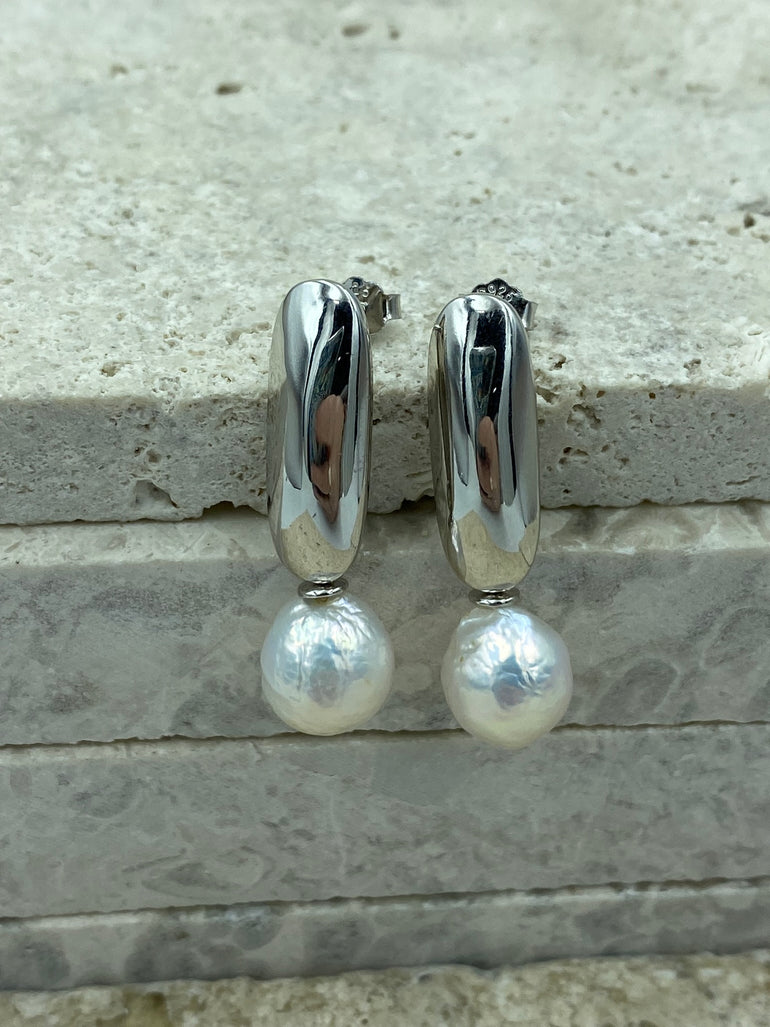 925 Sterling Silver & Natural Freshwater Pearl Earrings. Earring size from top to bottom is 3.3cm. Dangling pearl size is 1cm.