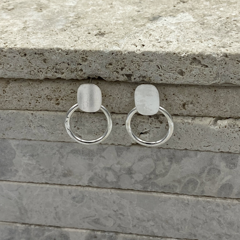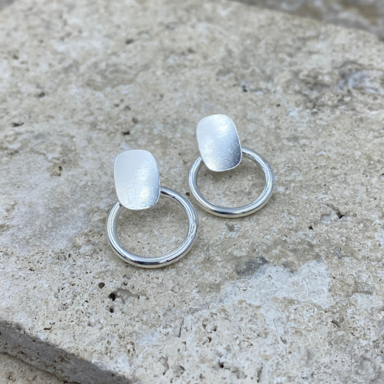 925 Sterling Silver Dangle Drop Earrings. 2.2cm top to bottom., circle 10mm.