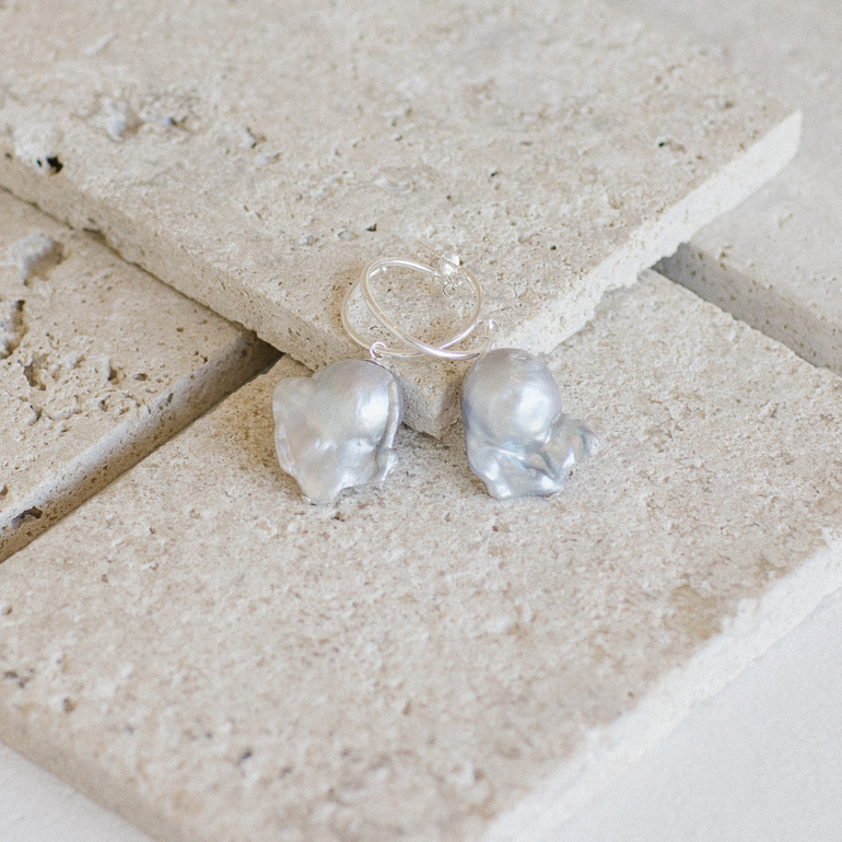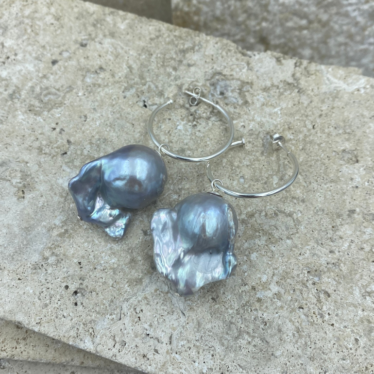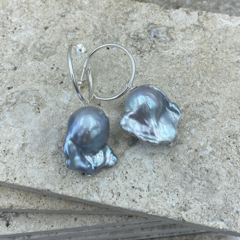 Statement Grey Baroque Pearl Pretty Woman Earrings
