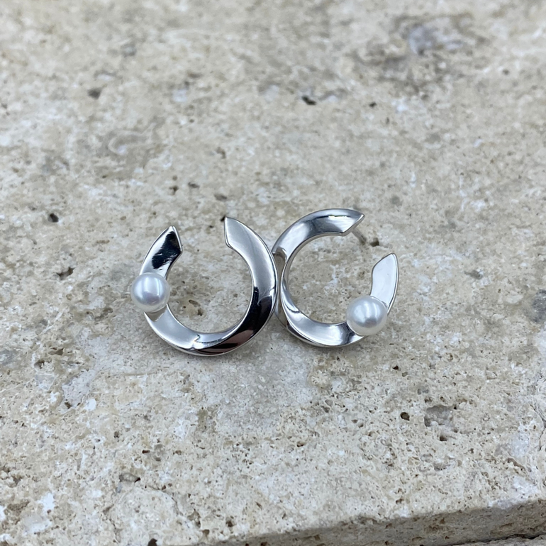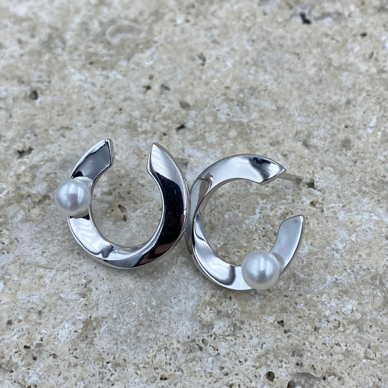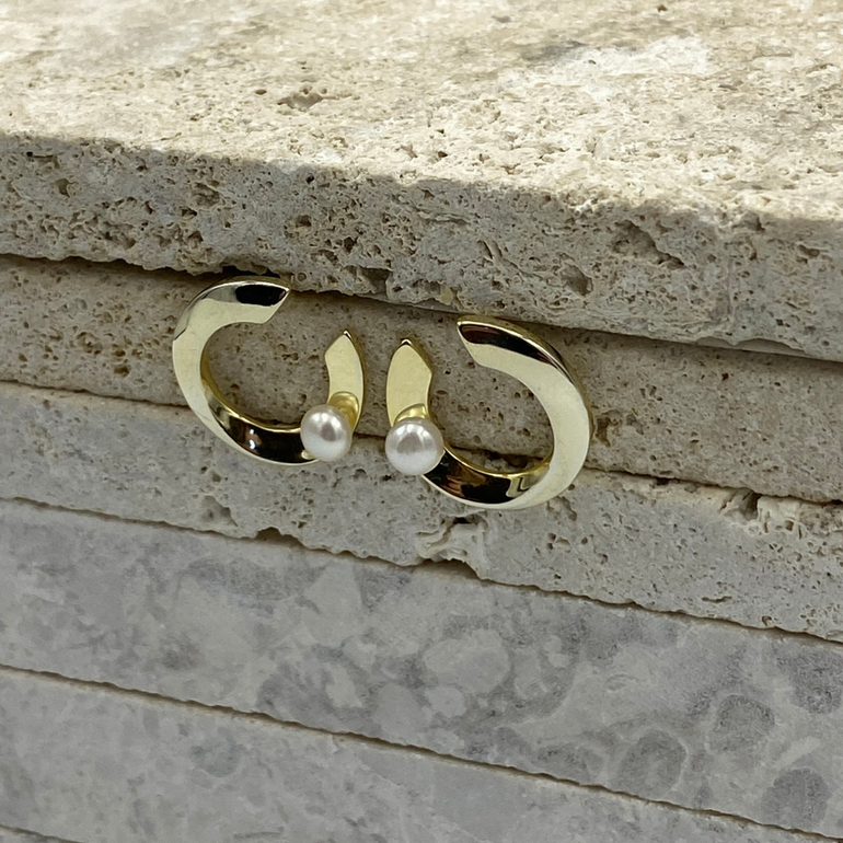 925 Sterling Silver base with a layer of Gold Plating & Natural Freshwater Pearl Stud Earrings. The earring is 17mm in diameter.