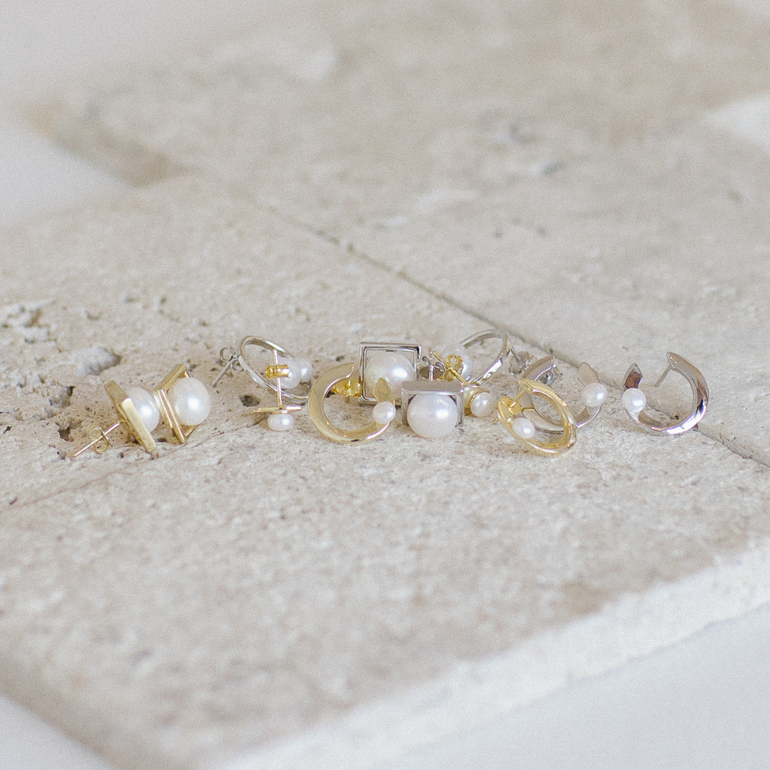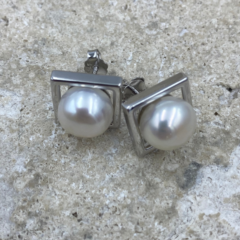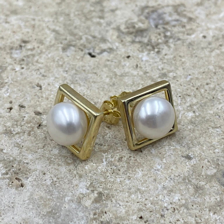 925 Sterling Silver base with a layer of Gold Plating & Natural Freshwater Pearl Stud Earrings. The earring is 12mm.