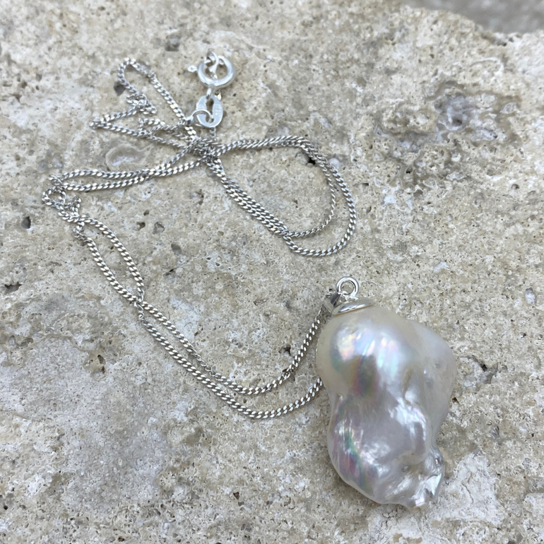 Natural Freshwater Baroque Pearl Pendant & 925 Sterling Silver chain. 45cm chain.