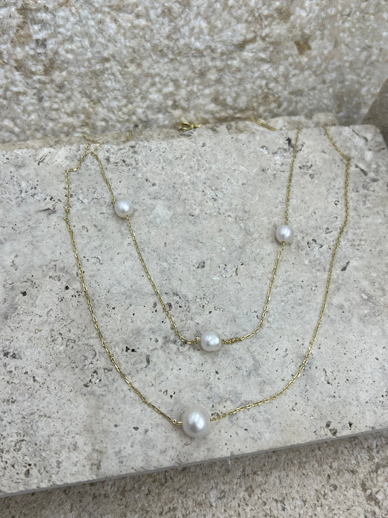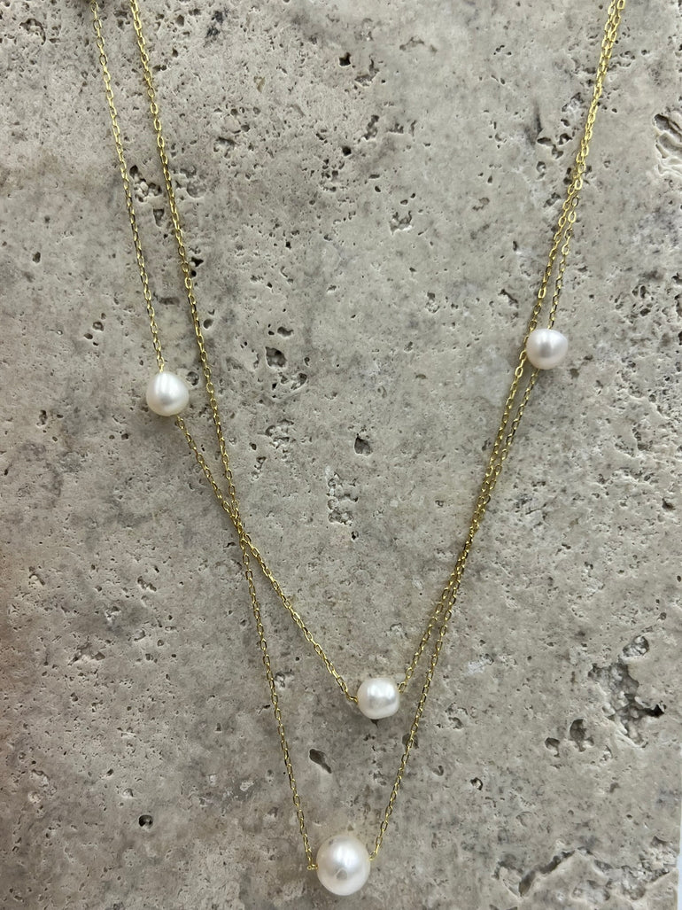 925 Sterling Silver base with a layer of Gold Plating & 6 Floating Freshwater Pearls.