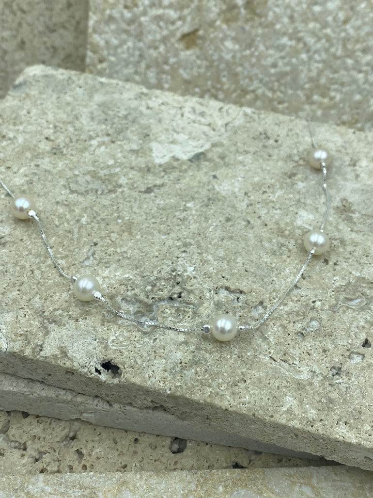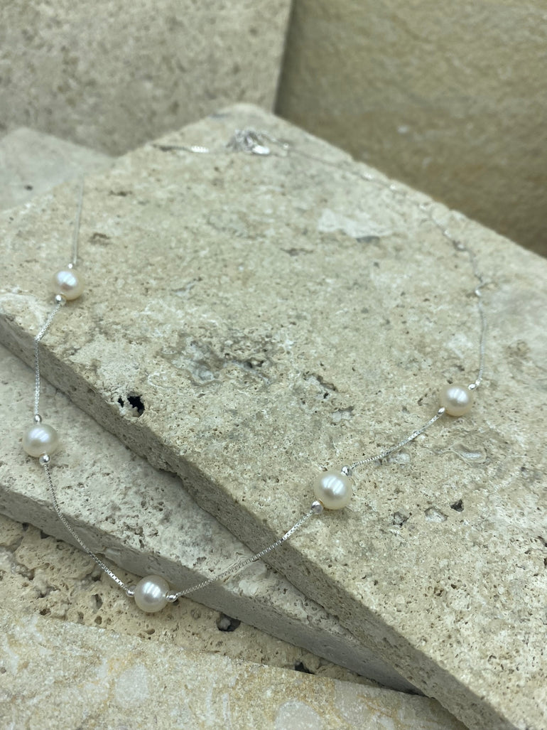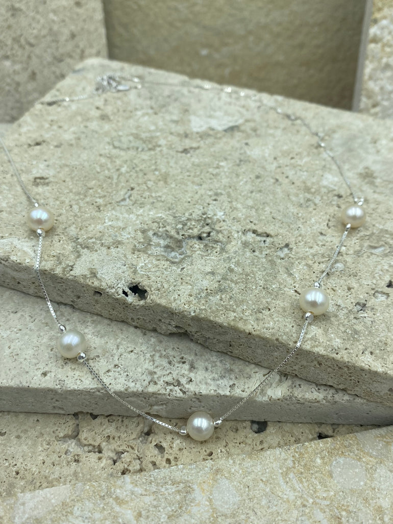 5 Natural Freshwater Pearls on 925 Sterling Silver chain. Length 42cm with 4cm extender.