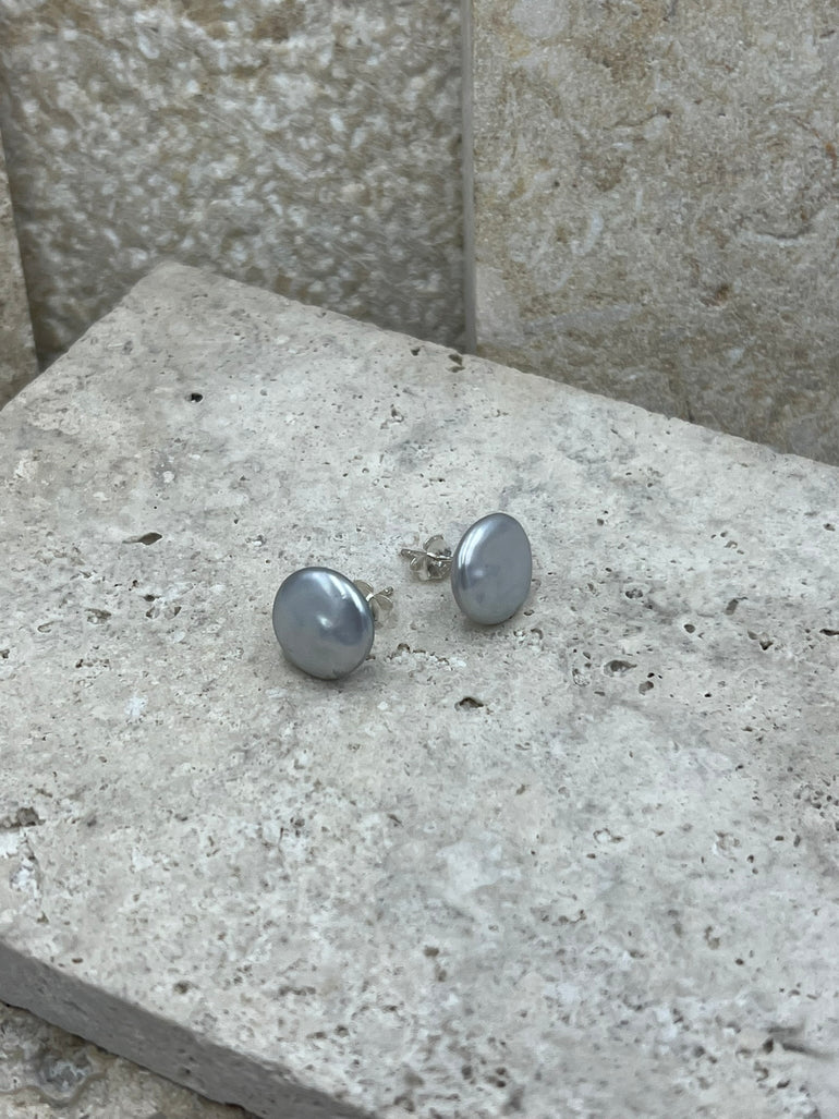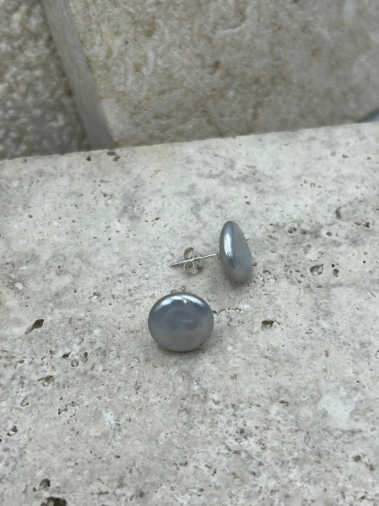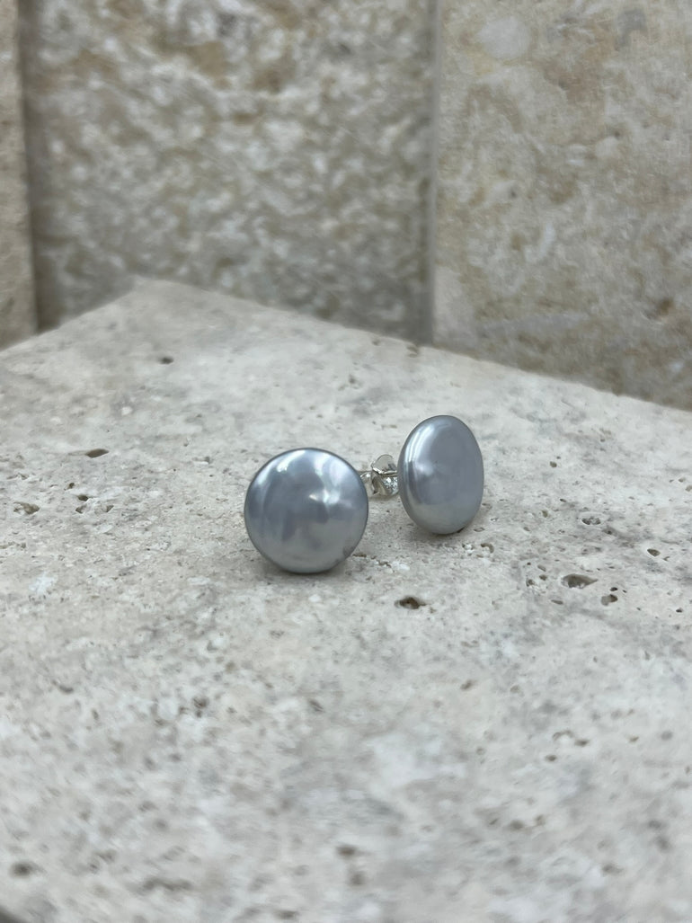 Grey Coin Pearl Stud Earrings