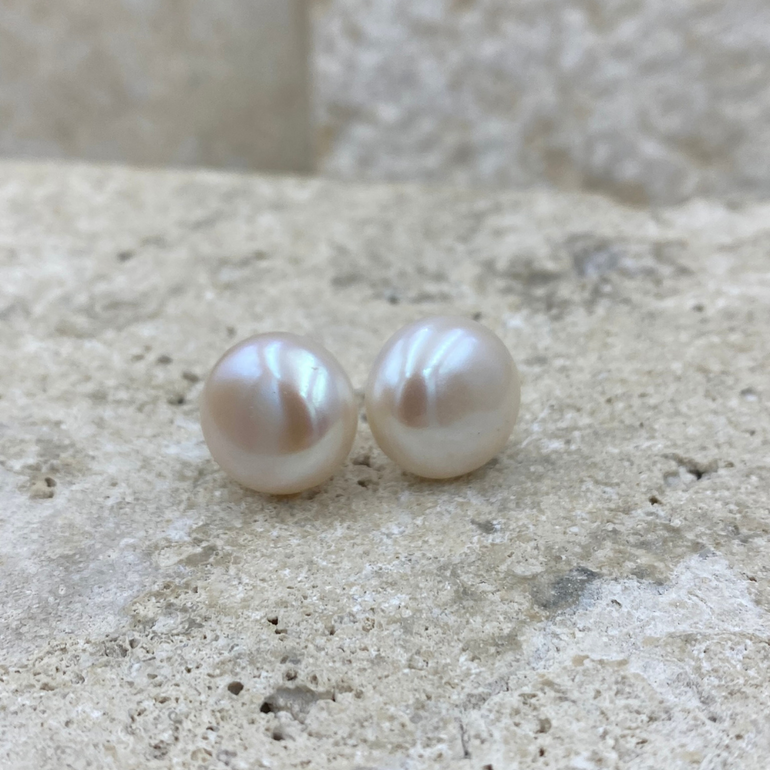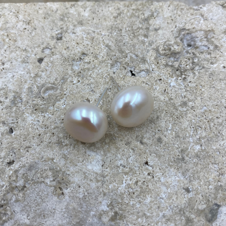 Natural Freshwater Pearl Earrings on 925 Sterling Silver Stud.