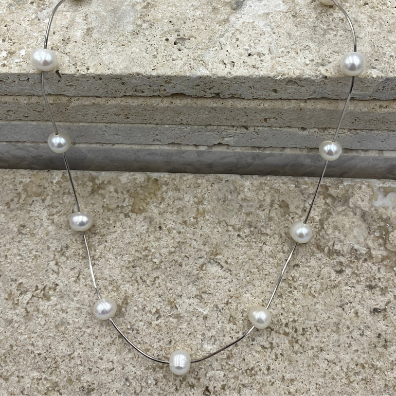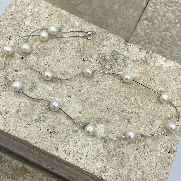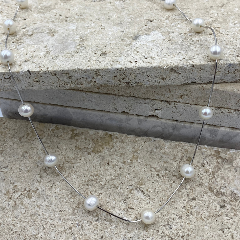 925 Sterling Silver Chain & Natural Freshwater Pearls. Length 42cm.