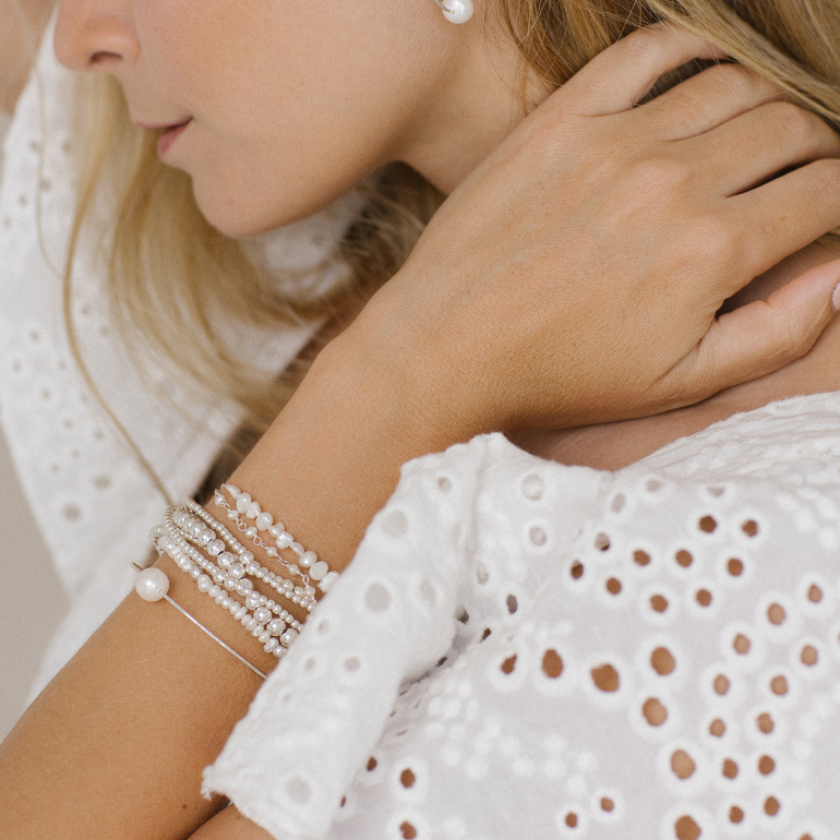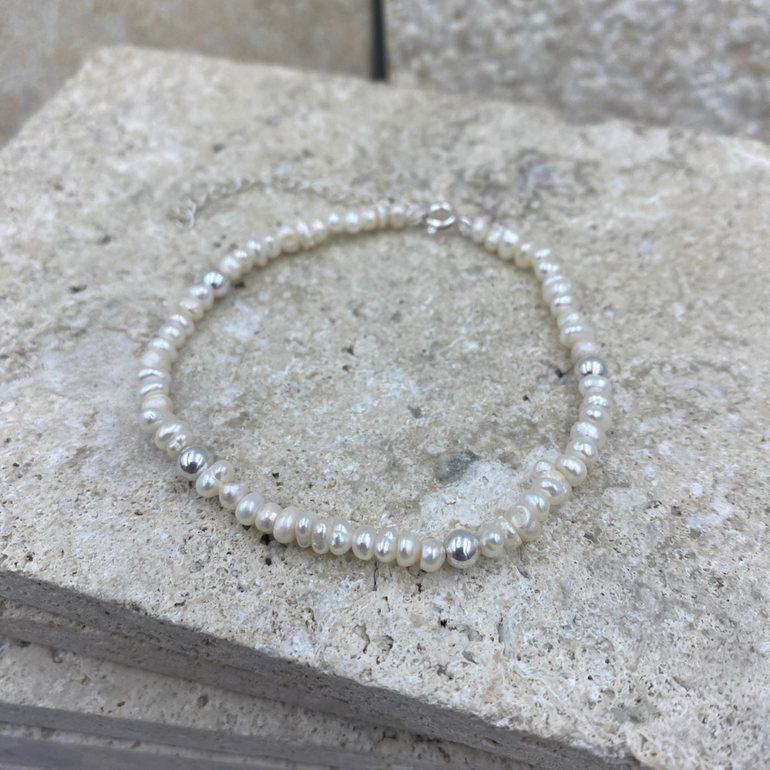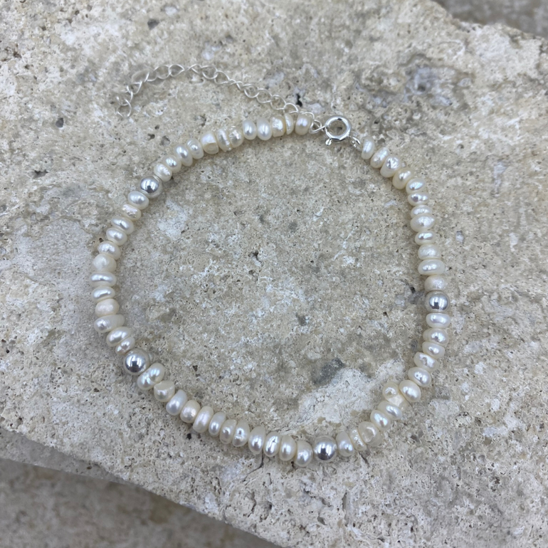 Natural Freshwater Pearls & 925 Sterling Silver Bead bracelet. 16cm with a 5cm extender.