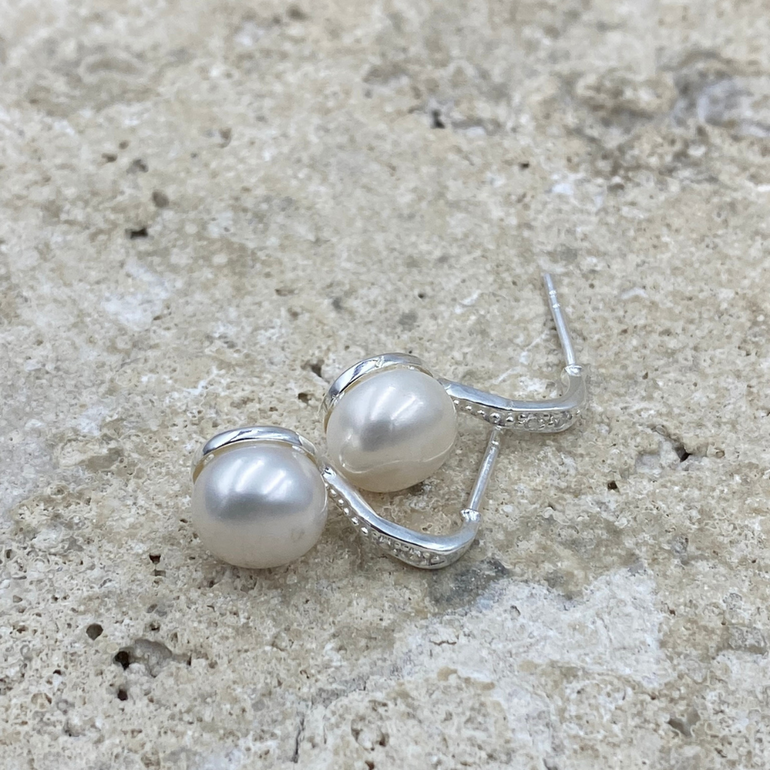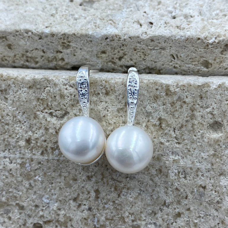 925 Sterling Silver, Cubic Zirconia & Natural Freshwater Pearl Drop StudEarrings. 1.9cm from top to bottom.