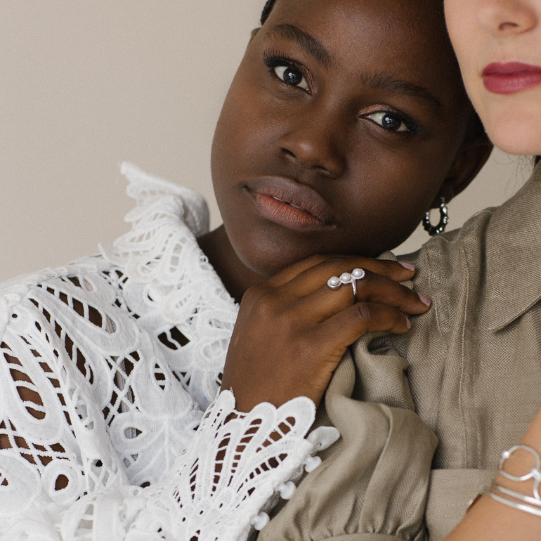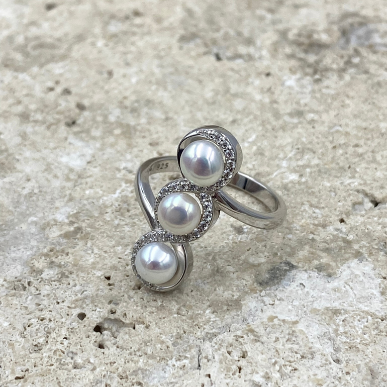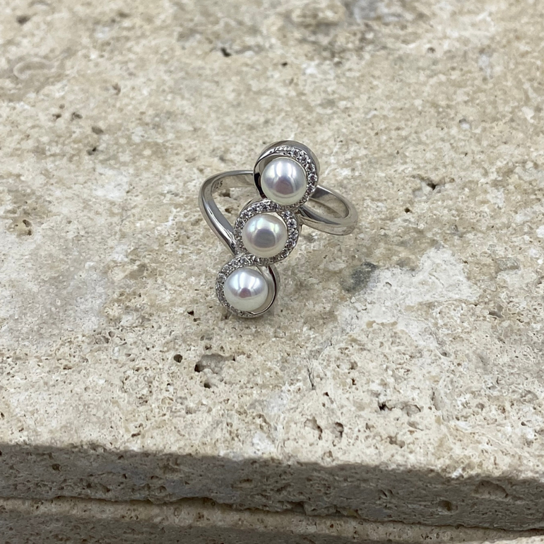 925 Sterling Silver, Natural Freshwater Pearl & Cubic Zirconium Ring. Ring size N.