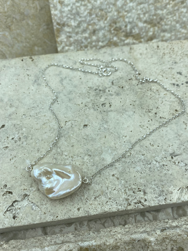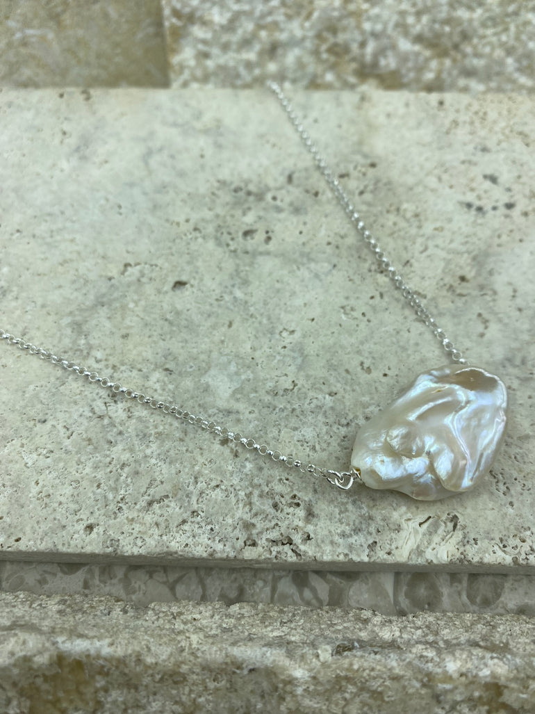 Natural Freshwater Baroque Pearl on 925 Sterling Silver chain. Pearl 2.3cm size.